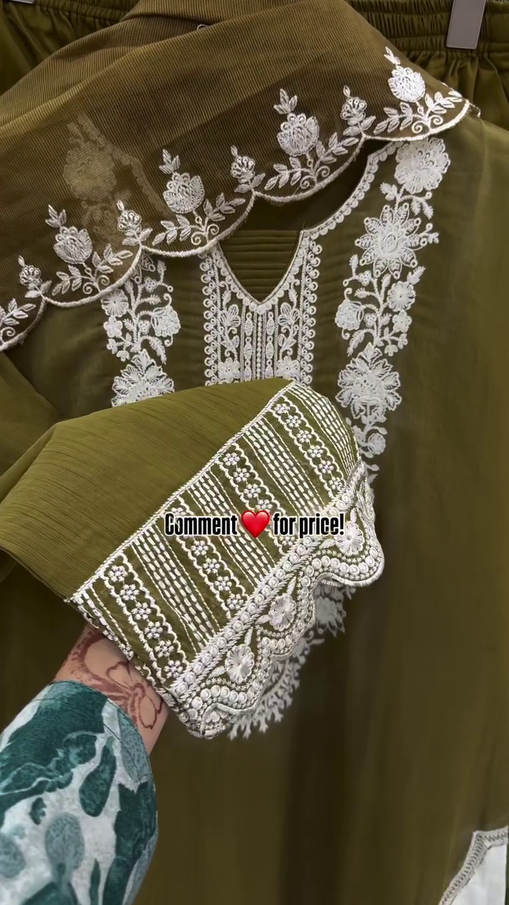 The flow of the fabric suggests comfort and breathability, making it ideal for long hours of wear during festive occasions. The wide-leg cut enhances movement and gives the outfit a contemporary ethnic appeal. The embroidery along the hemline provides just the right amount of ornamentation without overpowering the simplicity of the design.