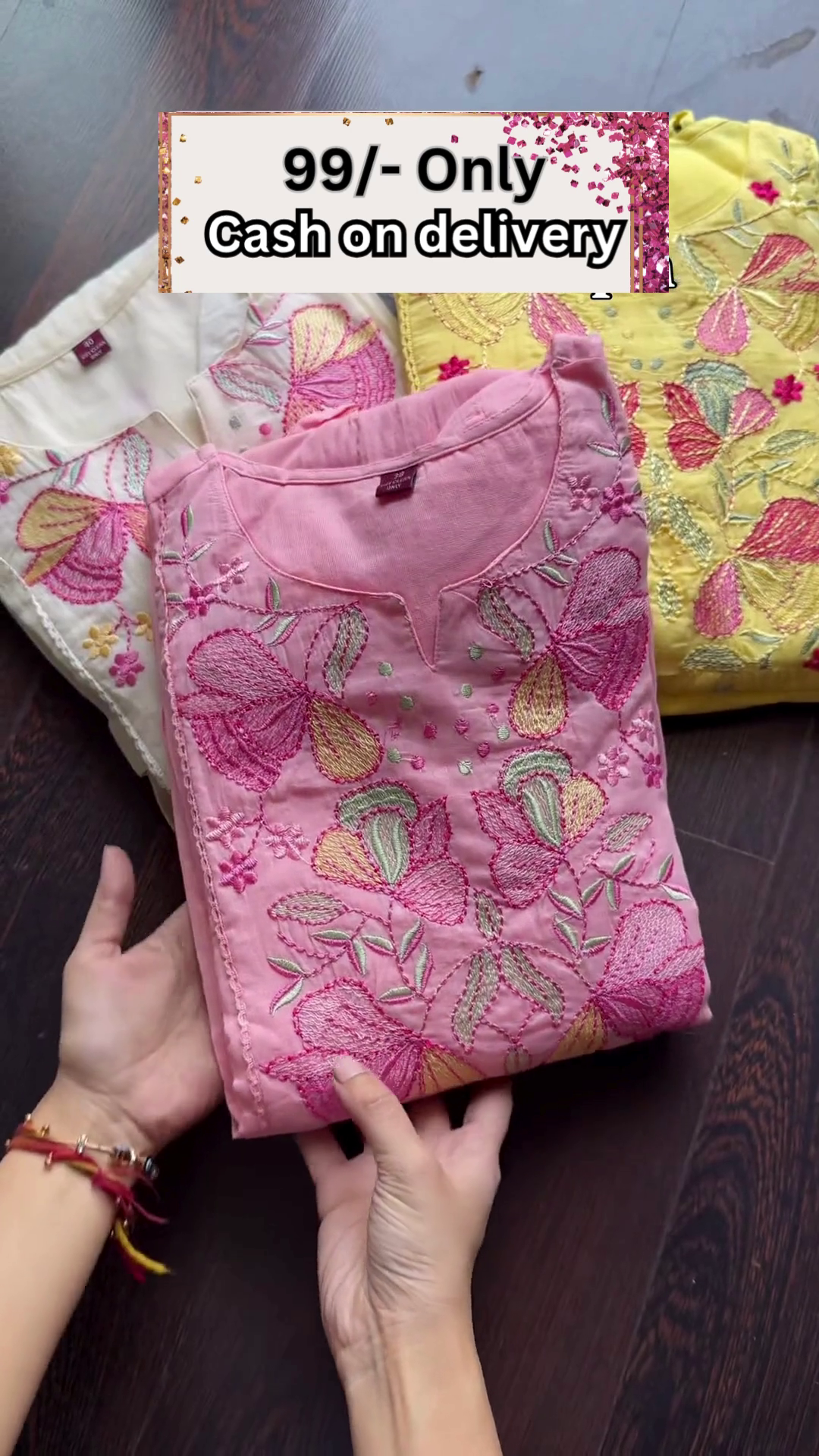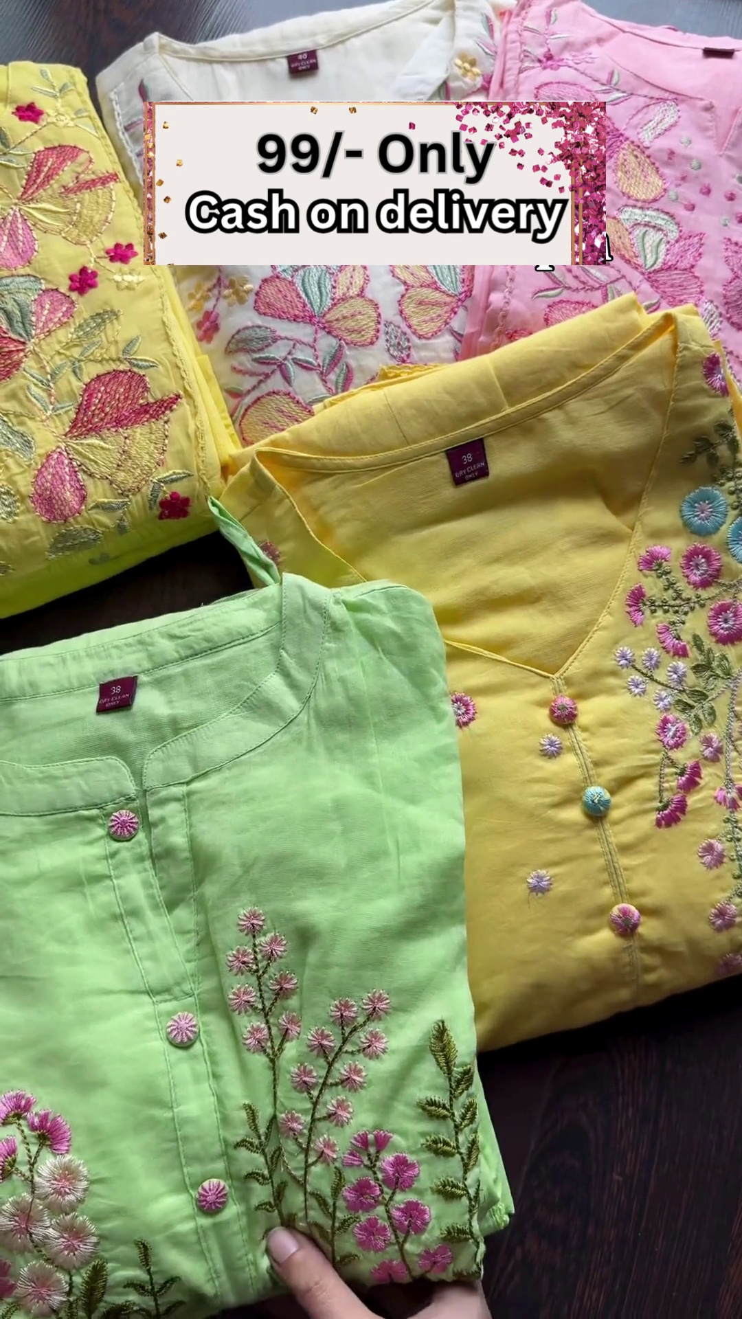 The overlay text prominently highlights a promotional offer: “99/- Only – Cash on Delivery.” This marketing message instantly grabs attention and makes the collection appear affordable and accessible. The cash-on-delivery option adds convenience and builds trust for customers who prefer payment upon receipt.